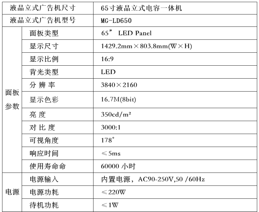 屏幕尺寸(英寸)  :   65